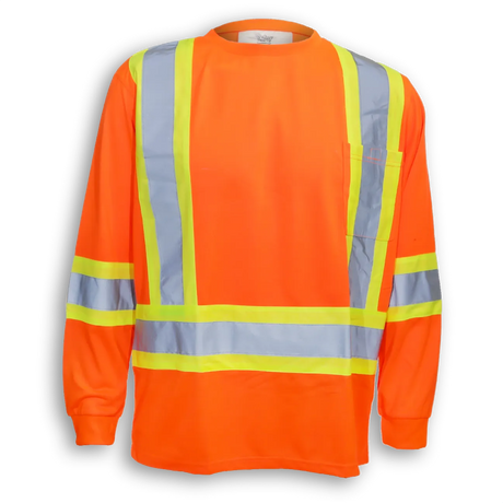 Forcefield Hi Vis Crew Neck Long Sleeve Safety Tee with Chest Pocket