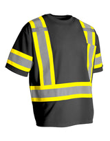 Hi Vis Crew Neck Short Sleeve Safety Tee Shirt with Chest Pocket and Arm Bands by Forcefield