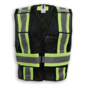 Polyester mesh safety vest has 5-point tear-away, 4 front pockets, "D" ring slot and 4" reflective tape. Meets CSA Z96-22 Class 2, Level 2.