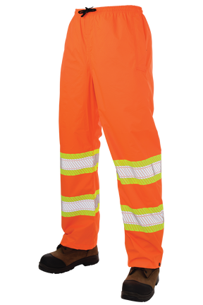 This packable rain pant goes with you. It tucks into an area smaller than a junior football. Simply unpack for an unrivaled safety rain pant whenever the need arises. Pair with our SJ05 Hi-Vis Packable Rain Jacket.