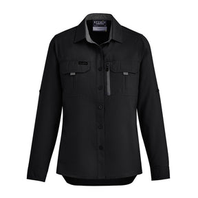 Women's Outdoor Long Sleeve Shirt by Syzmik Workwear - Style ZW760 - Black / 2 est en rupture de stock et sera expédié dès qu’il sera de retour en stock.