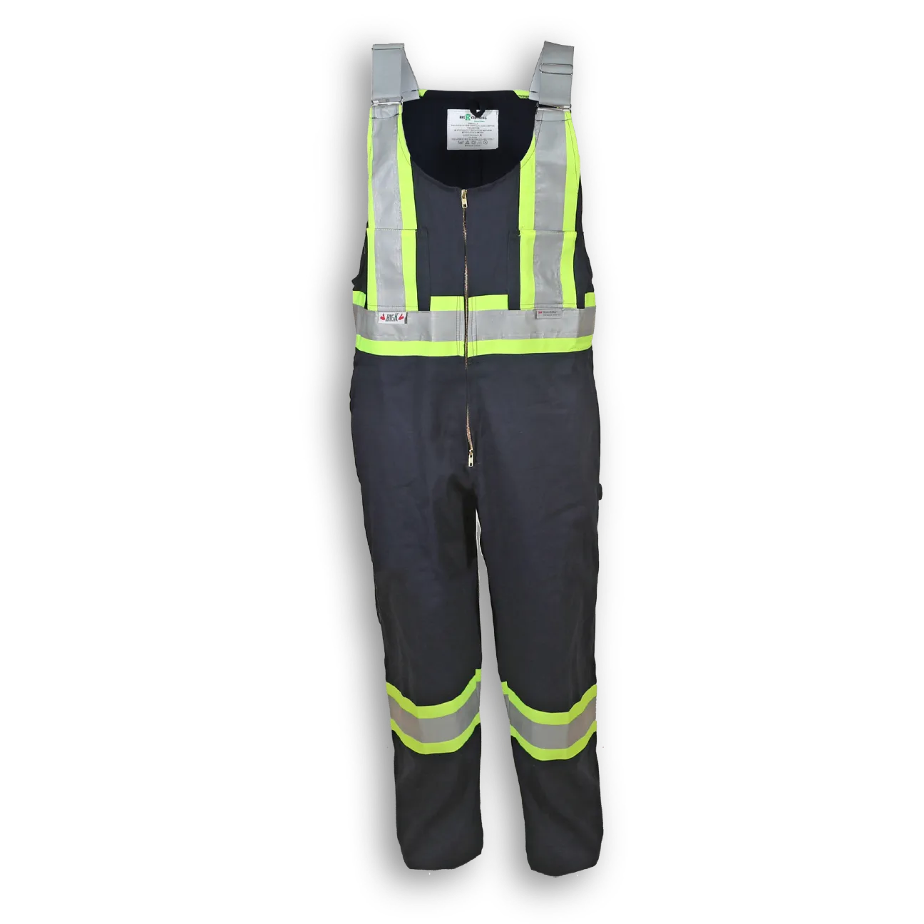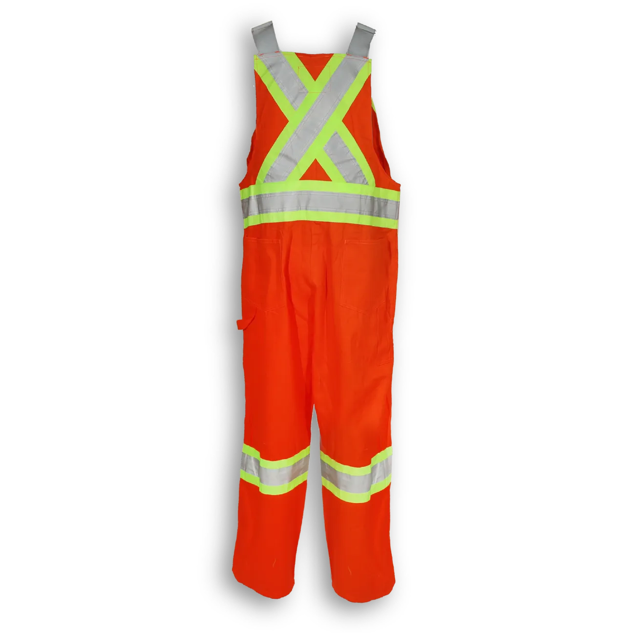Introducing Big K Clothing's 100% Cotton Hi-Vis Overalls. Crafted with soft, durable cotton, these overalls offer 4 front and 2 back pockets for ample storage, and 4" 3m industrial washable tape for enhanced visibility.