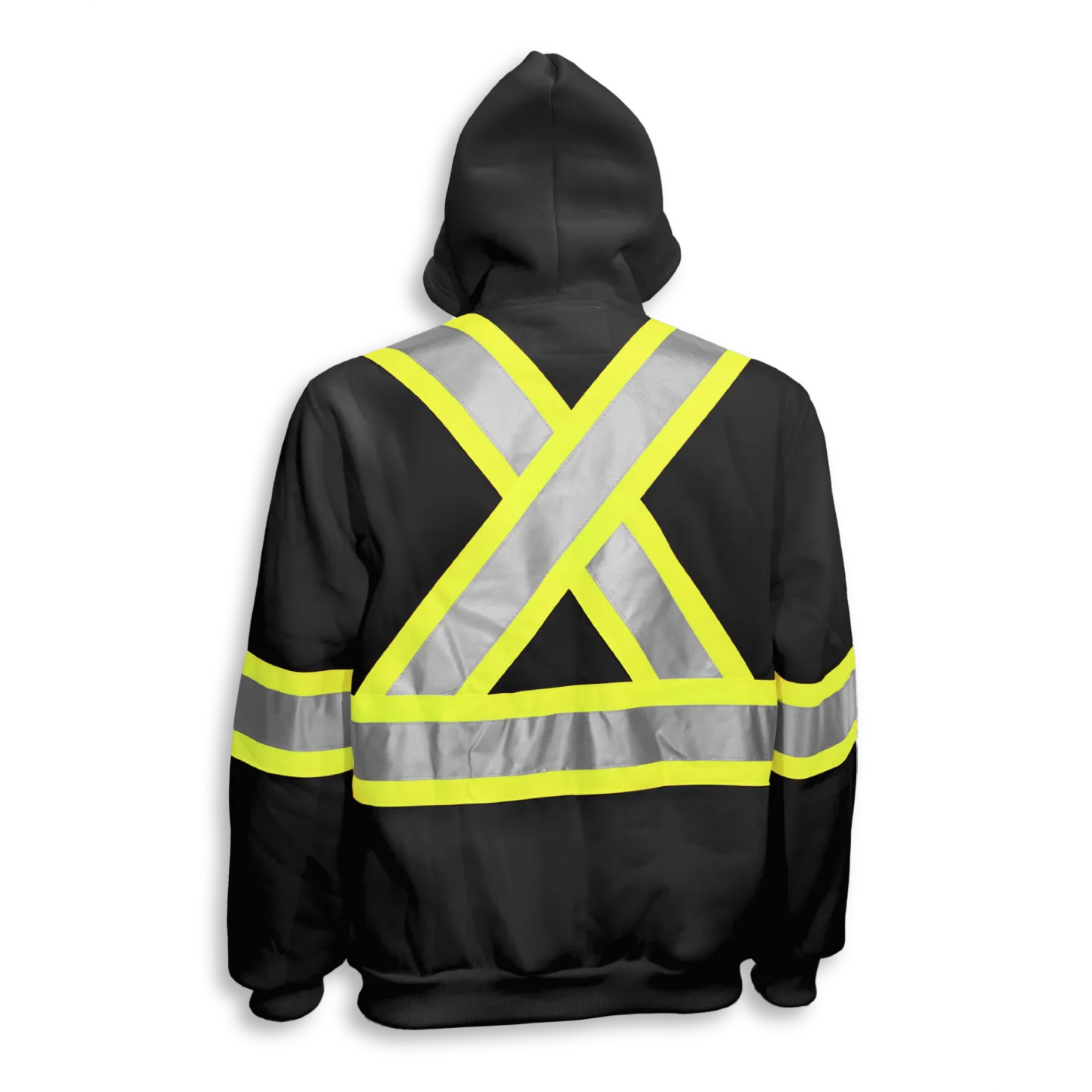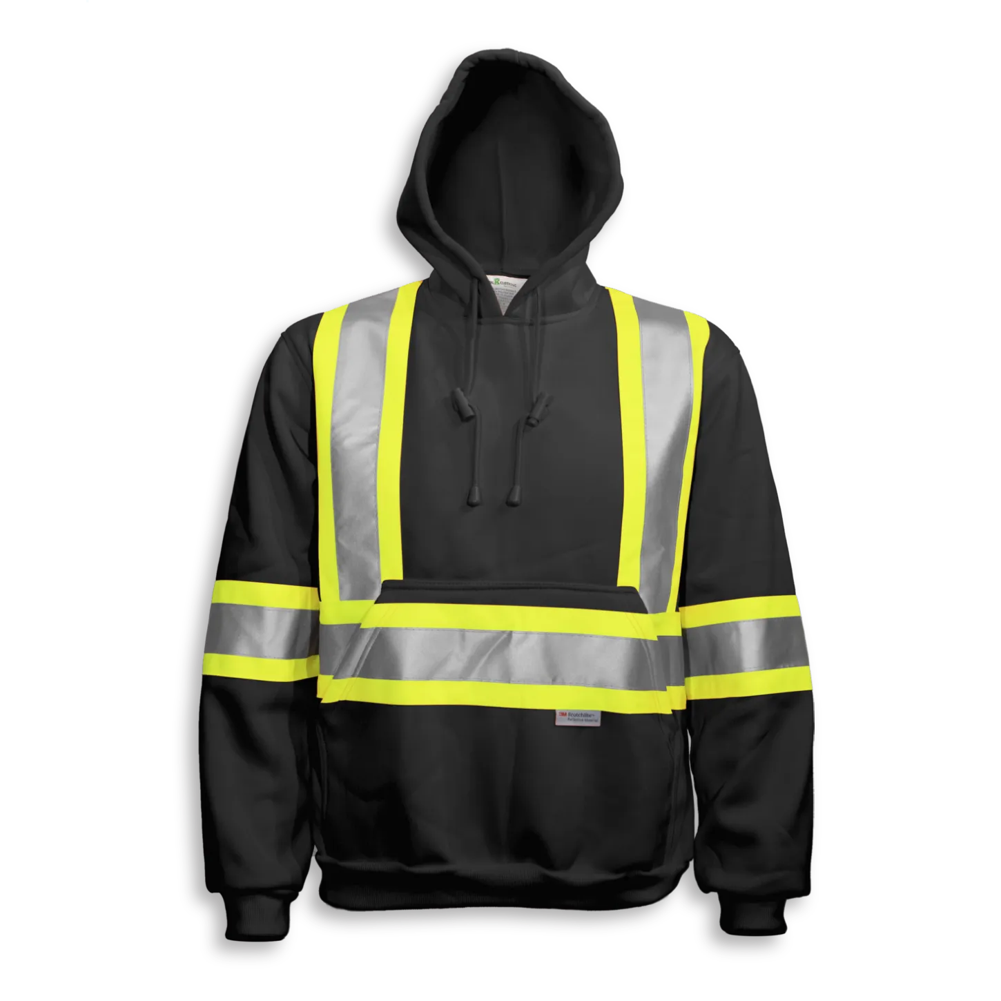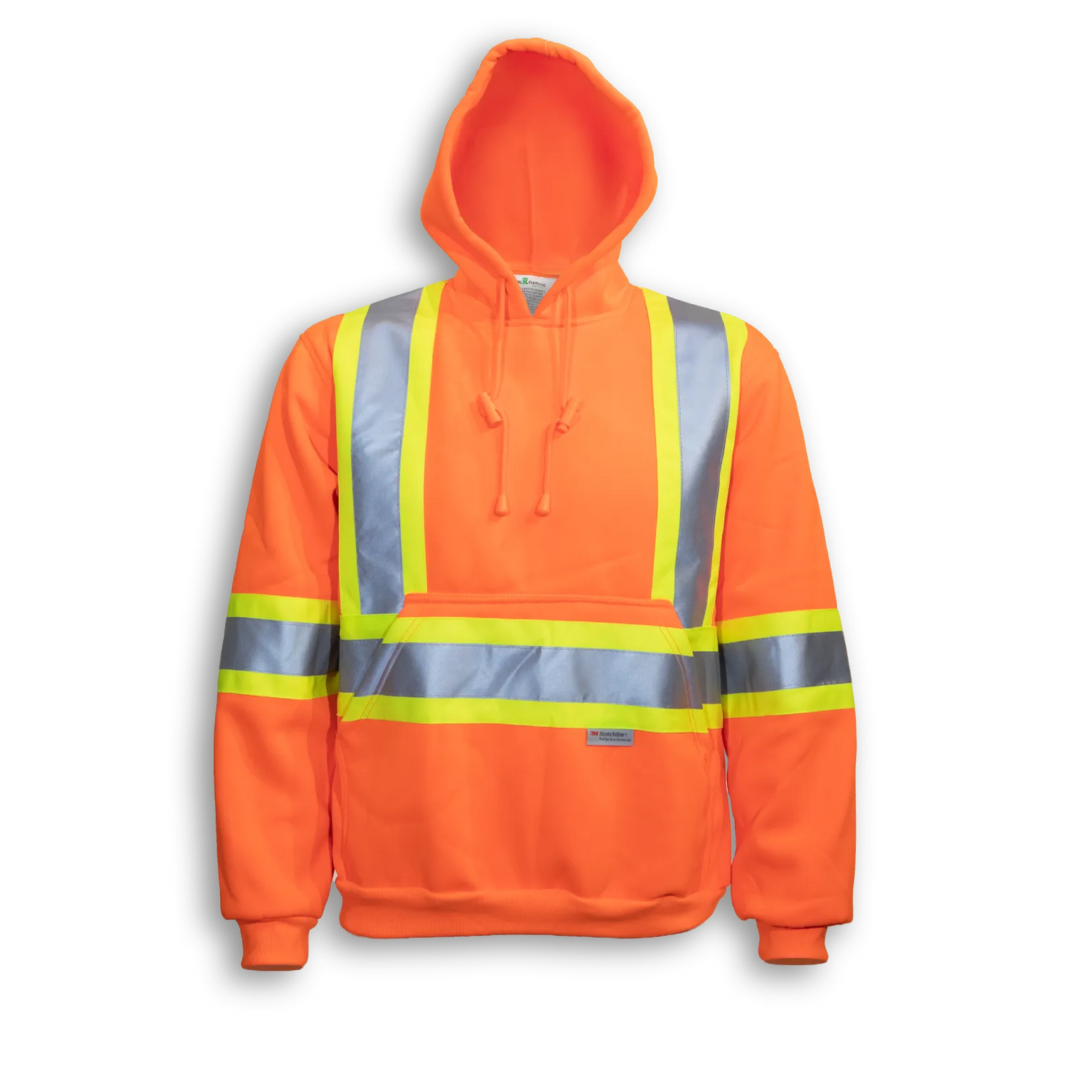 Our orange polyester hoodie has a hand pouch and 4” 3M reflective tape. It meets CSA Z96-22 Class 2, Level 2 standards.