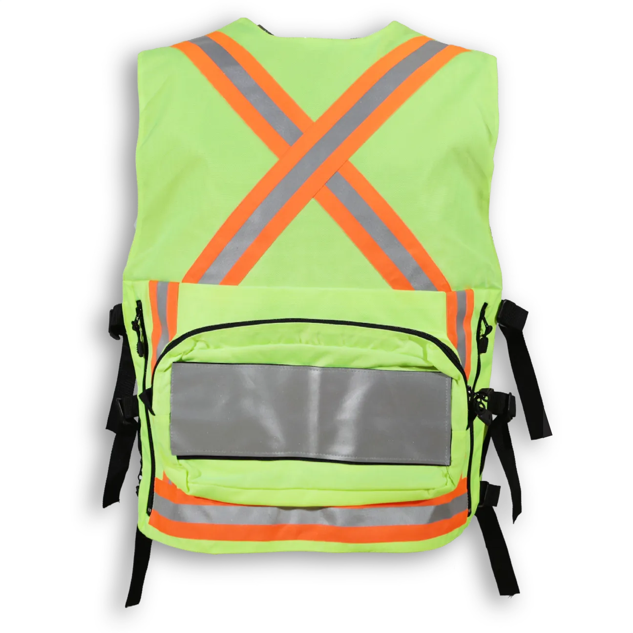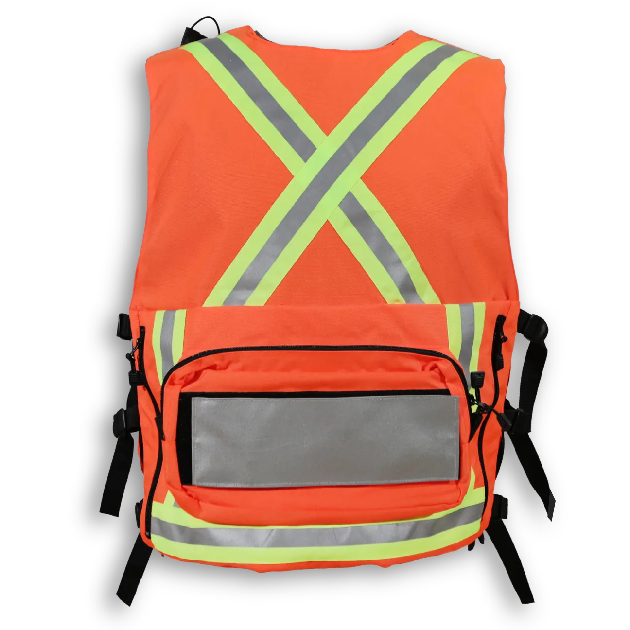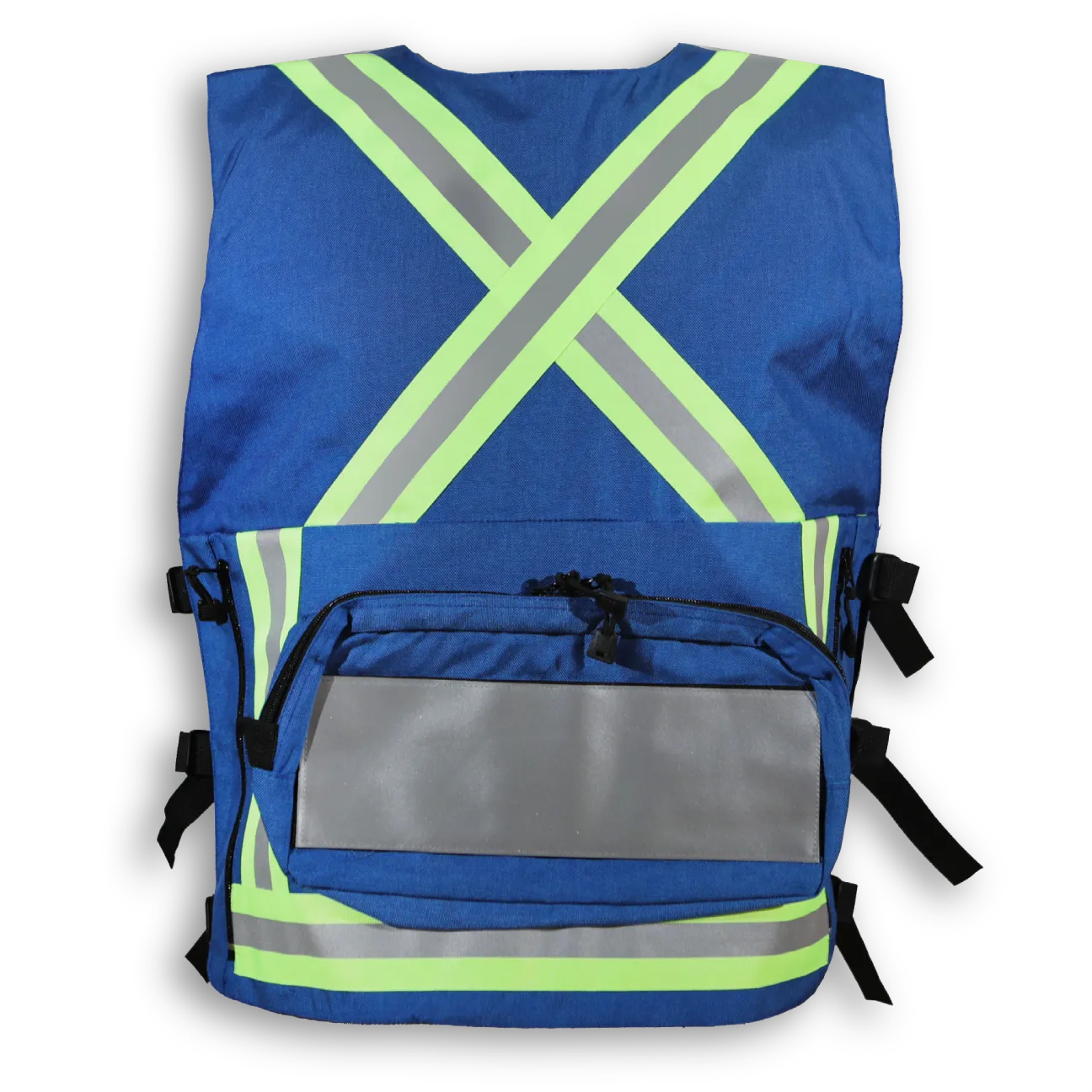 Made from 1000 Denier nylon, this first aid vest has 5 large front pockets, fully adjustable straps, a radio pocket, a flashlight holder and a back pocket with reflective tape that can be printed with title. It features a highly durable YKK zipper closure and 2 ¼” 3M reflective tape.