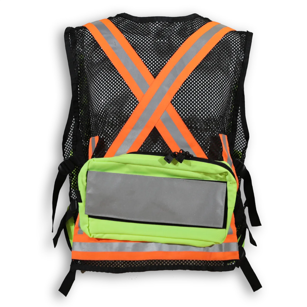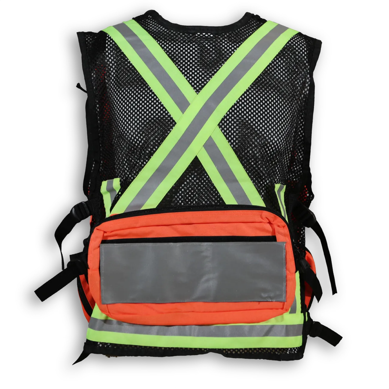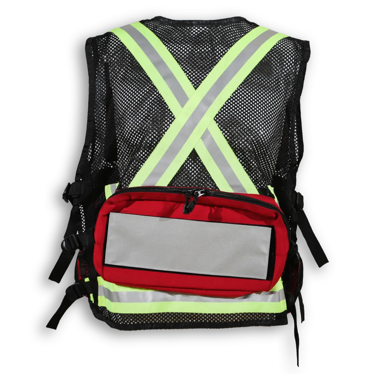Made from 1000 Denier nylon, this first aid vest has 5 large front pockets, fully adjustable straps, a radio pocket, a flashlight holder and a back pocket with reflective tape that can be printed with title. It features a highly durable YKK zipper closure and 2 ¼” 3M reflective tape.