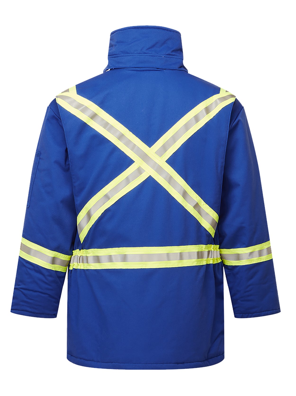 - Lowered X striping on back to allow room for company logo or hooded undergarment