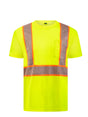 This Hi-Vis Short Sleeve T-Shirt uses a lightweight moisture wicking polyester fabric for breathability and comfort. Features include contrast segmented striping for high visibility, a crew neck, a taped neck seam for extra comfort.